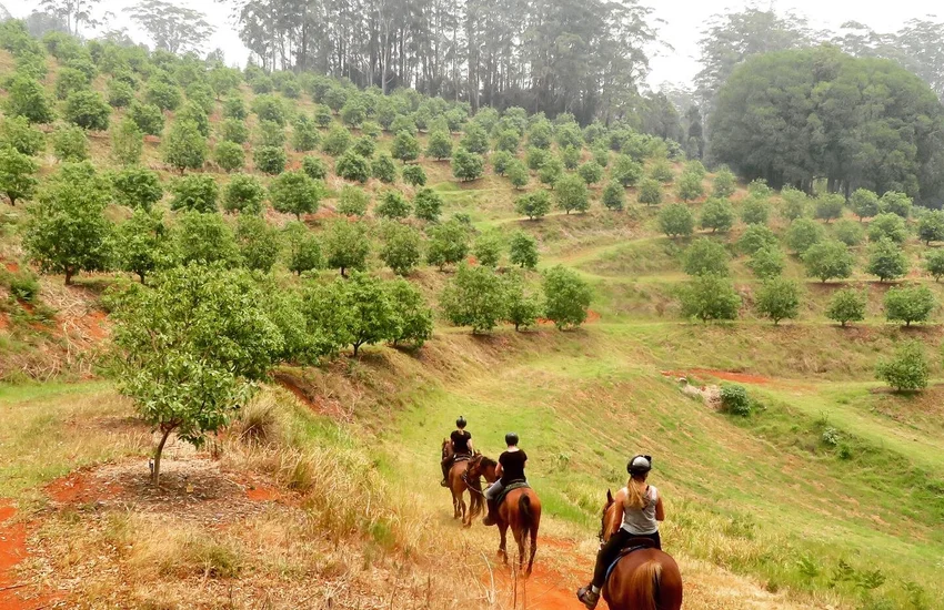 Each day has a different destination giving a good variety of scenery. Trails lead to breathtaking mountaintop views, vineyards, green rolling farmland, avocado orchards, creek crossings, majestic eucalypt trees and secluded rainforest valleys. The spectacular beaches are a horse rider's dream come true.