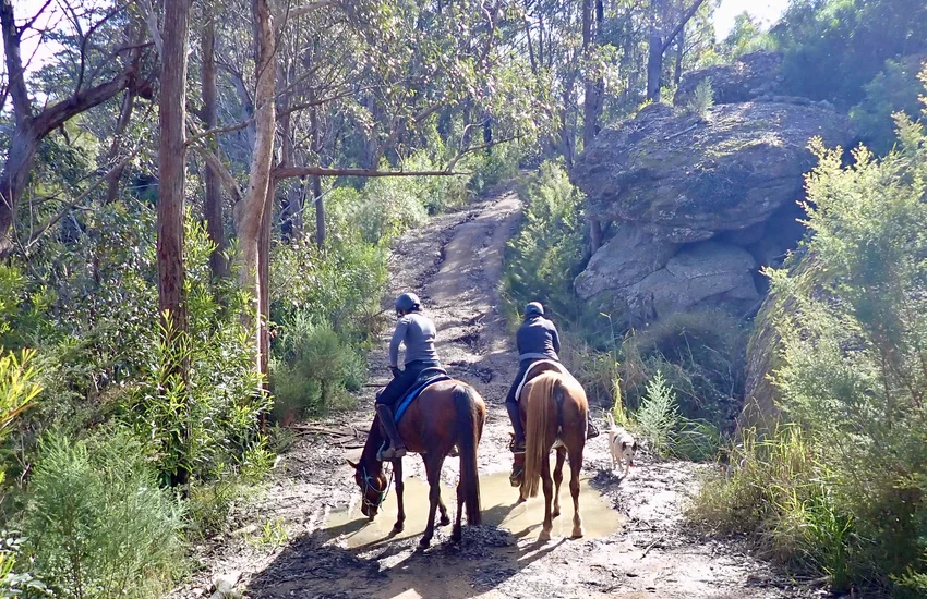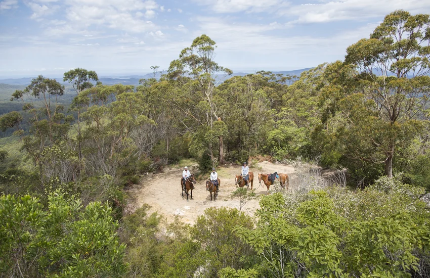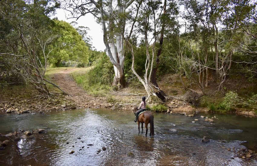 - We have an early start, riding through a beautiful neighbouring property, cross scenic Upsalls Creek (platypus live here but are rarely seen) and a steep climb up to a forest ridge.